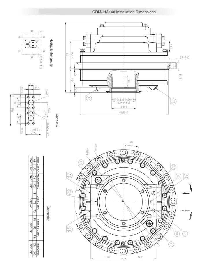 CRM-CA140 series Hydraulic plunger motor CA series radial piston hydraulic motor for sale